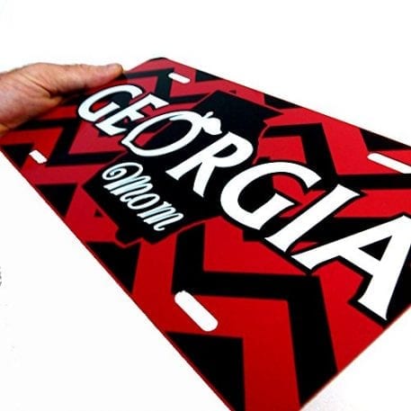 6″ x 12″ Georgia Mom License Plate manufactured on aluminum and high quality vinyl. This mirror car tag will fit most any front bumper. This original Georgia Mom tag design features the Peach Logo and the State of GA logo. We also offer this custom car tag in other colors.