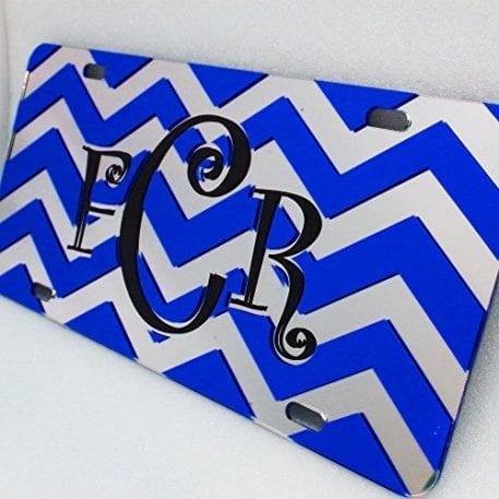 Chevron monogrammed license plate featuring your name or initials. Our custom made monogrammed license plates are made of mirror acrylic and high performance vinyl. These custom personalized license plates measure approx 6? x 12? which fit most any front